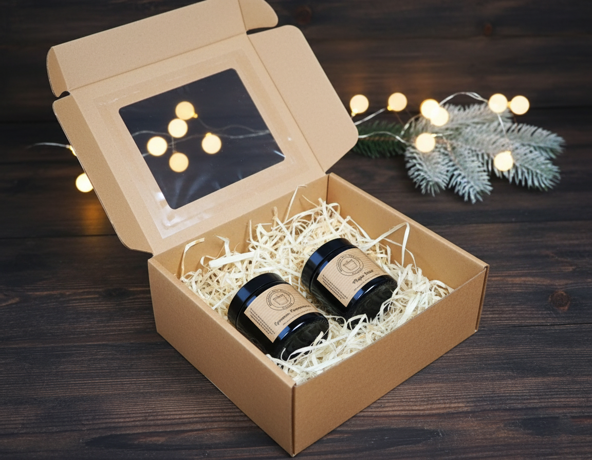 Całość zamknięta w eleganckich słoiczkach z zakrętką i stylową etykietą.